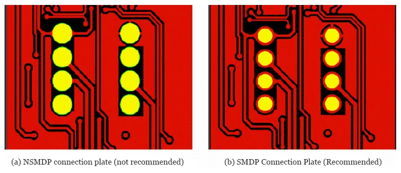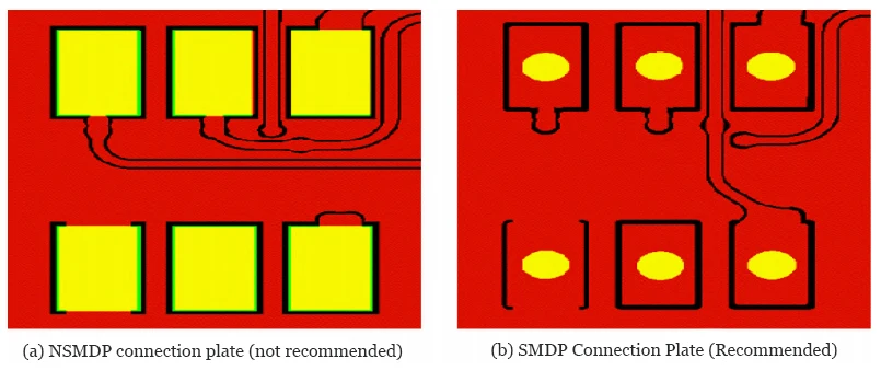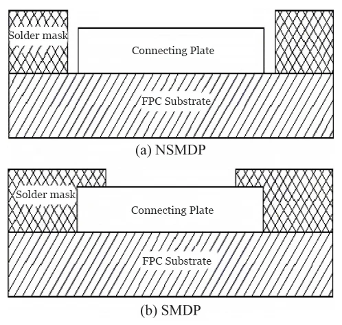 The other type relies on solder mask patterns, called solder mask defined pads (SMDP), commonly called ‘solder mask pads’ in FPCB design, as shown in Figure 3(b).