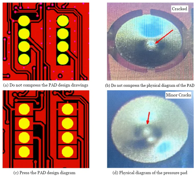 To validate the impact of different bump connection pad designs on bump cracking, in-depth studies focused on two designs: pressed PAD and non-pressed PAD for the bump surface.