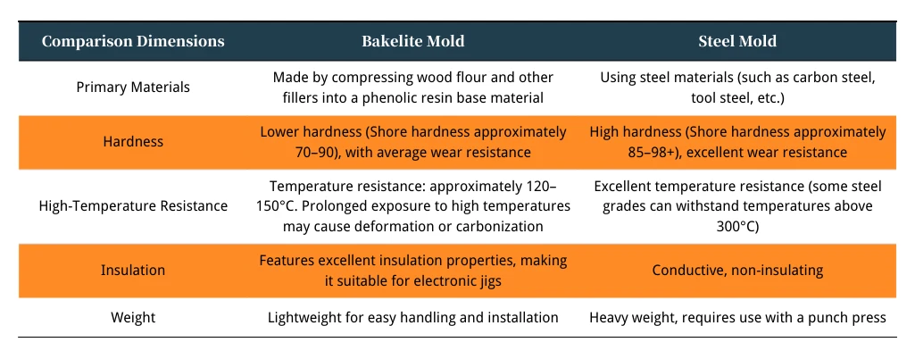 Table 1 Differences Between Bakelite Board Fixtures and Steel Molds