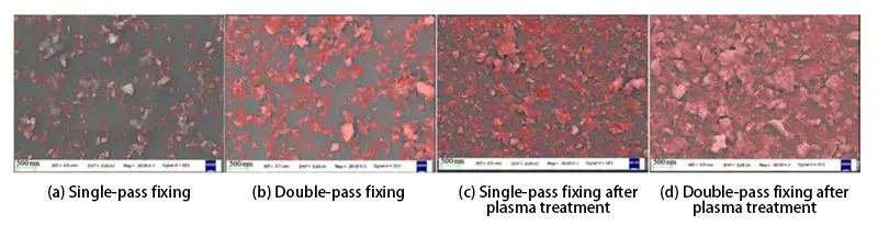 The particle coverage on the plasma-treated and untreated PI films after the second fix step was 74.182% (Fig. 5(d)) and 46.193% (Fig. 5(b)), respectively.
