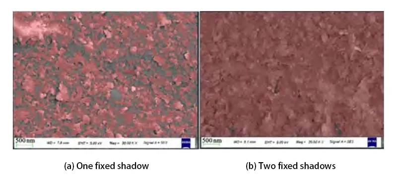 After the second step of hole alignment, shadowing, and fixing (Figures 3(f), (g), and (h)), the adsorbed graphite particles continued to increase, covering most of the PI film surface.