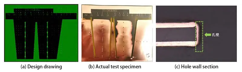 Electroplating tests demonstrated good copper plating results in the holes, corroborating the aforementioned conclusions and thereby validating the reliability of this evaluation method.