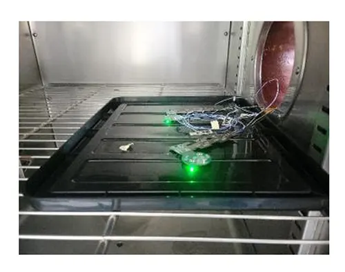 The device underwent testing according to GJB1032A-2020, with an operating temperature range of −40 °C to 60 °C. Both low- and high-temperature holding periods were set at 30 minutes. All modules functioned normally during and after testing. Figure 10 shows the temperature cycling test.