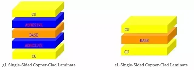 — Single-sided CCL: 3LCCL (with adhesive), 2LCCL (without adhesive). See illustrations below.
