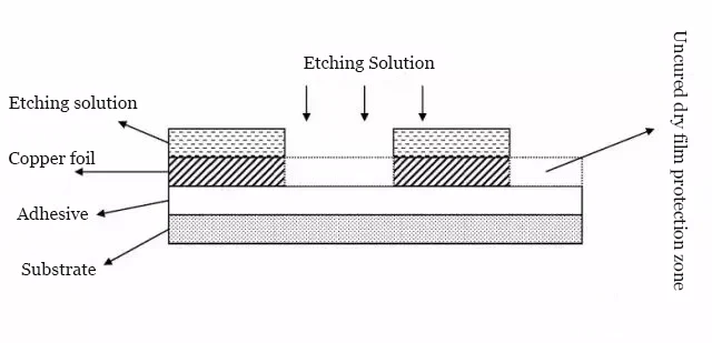 Process Purpose: Use the chemical solution to etch away the exposed copper after development, thereby forming the pattern transfer.