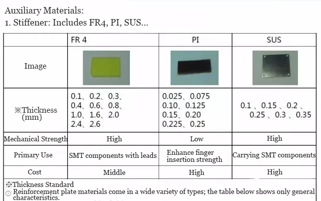 1. Stiffener: Includes FR4, PI, SUS…