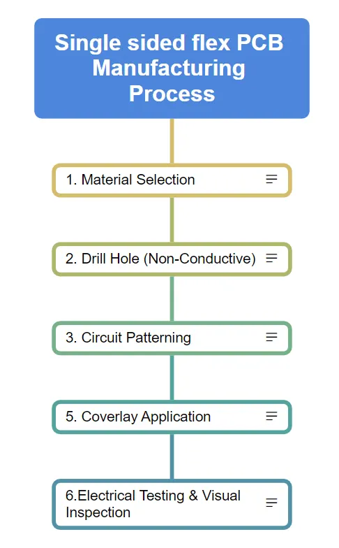 A single-sided flex PCB is a type of board. It has one layer of conductive material. This layer is on a flexible base material-polyimide (PI) or polyester (PET).